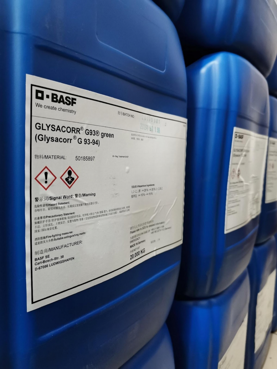 Trong sản phẩm nước làm mát glysacorr g93 có chứa amine-, nitrite và phosphate- tự do. Đây là hỗn hợp ức chế nguyên chất đậm đặc có tác dụng làm mát các loại động cơ đốt trong. Sản phẩm đáp ứng đầy đủ các tiêu chuẩn như German Army, Deutsche Bahn, MTU MTL 5049 và Scania. Glysacorr g93 có các tác dụng nổi bật đó là: