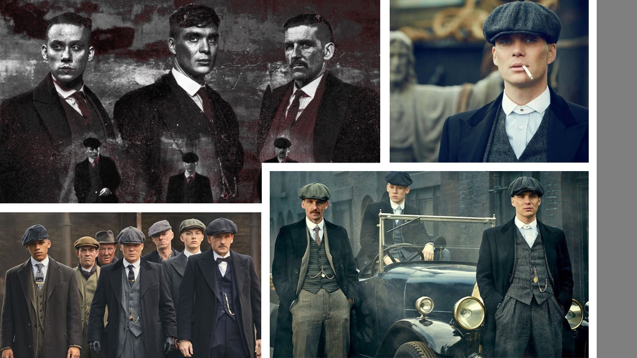 Áo khoác Topcoat, bộ Suit trầm tính, áo sơ mi cổ bo tròn, Boots da chắc chắn kết hợp cùng Mũ Baker Boy cổ điển. Một phong cách thời trang bỗng dưng nổi lên lại gần đây là do sức ảnh hưởng của bộ Series Peaky Blinders - Bóng ma Anh Quốc. Thêm một bộ phim kinh điển nữa về tâm lý tội phạm nổi lên trong những năm gần đây: Peaky Blindes - Bóng ma Anh Quốc.