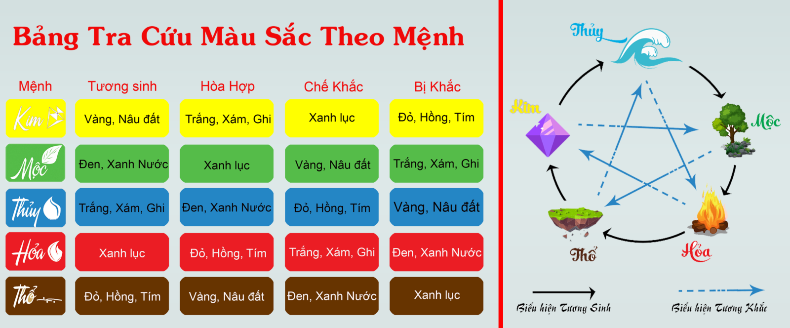 Để hiểu thêm về Các Màu Tương sinh Tương Khắc, các bạn có thể tham khảo sơ đồ sau: